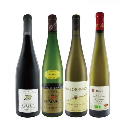 多様な地形を形成しているアルザス地方は、フランス屈指の白ワイン銘醸地でとして知られています。アルザスの4大品種リースリング、ゲヴェルツトラミネール、ピノ・グリ、ミュスカを厳選した4本セット。白ワイン好きの方におすすめです。