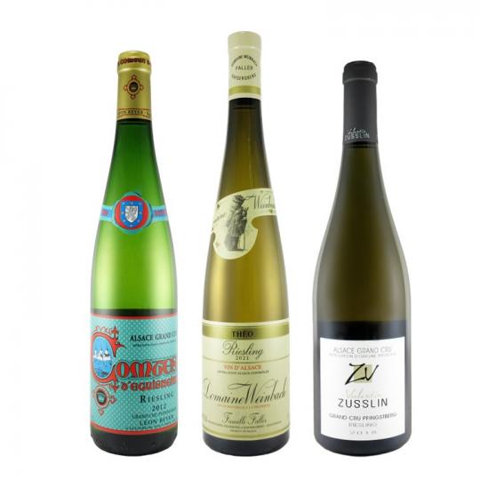 フランス屈指の白ワインの産地アルザスより特級畑を含むリースリングを厳選しました。作り手、畑によって同じリースリングでも味わいに明確な差が生まれます。どのリースリングも凝縮感があり、濃密な味わいです。それぞれの特徴を楽しめる3本セットです。