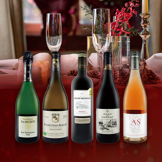 シャンパーニュをはじめ、フランスの主要ワイン銘醸地のワインをご堪能いただける5本を厳選しました。いつもより少し贅沢に愉しみたいシーンにおすすめです。