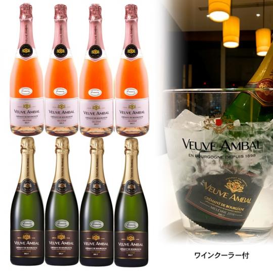 ブルゴーニュ随一のクレマンの名手ヴーヴ・アンバル社が良年にのみ造るヴィンテージ・スパークリングワイン。白ロゼの8本とワインクーラー付きの8本セットです。