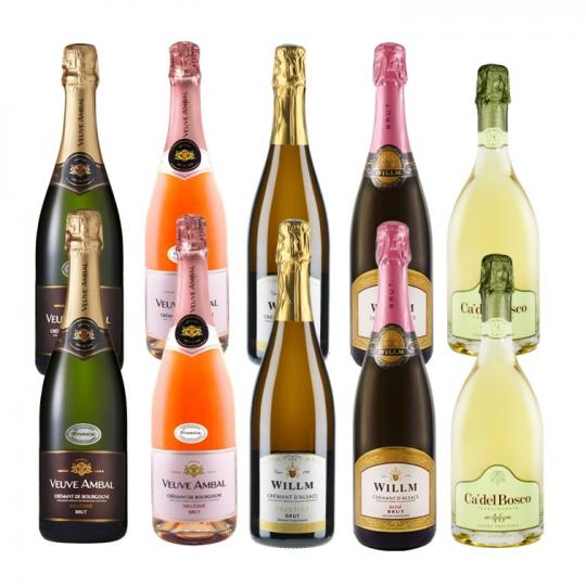 スパークリングワイン5種類10本セット!クレマン・ド・ブルゴーニュの名手ヴーヴ・アンバル社が良年にのみ造るヴィンテージ・スパークリングワインと、アルザス地方のスパークリングワインに、イタリアのスパークリングワイン「スプマンテ」入り。お集りのシーンや、デイリーにも重宝します。