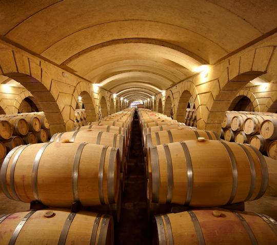 また、ブドウに夜露がつくのを嫌うブリュモン氏は収穫を夜に行います。ブドウが傷つかないよう細心の注意を払いながら、人間の手で一粒一粒摘み、全て同じサイズのブドウを選定し、収穫用バットにはブドウを重ねずに1段に並べます。大理石がひきつめられた城のような徹底的に清潔に保たれているセラーで約18ヶ月間ブドウを熟成させますが、そのセラー内は外気をシャットアウトさせ、炭で浄化させた空気だけでまわしています。