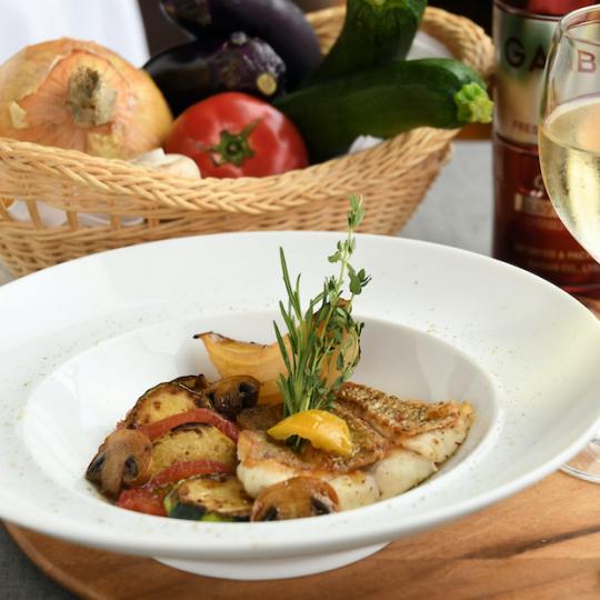 ホタテ貝やオマール海老、ヒラメ等のソテーとバターソース、鶏肉のロースト、伊勢海老のグラタン、サーモンの白ワイン蒸し等。